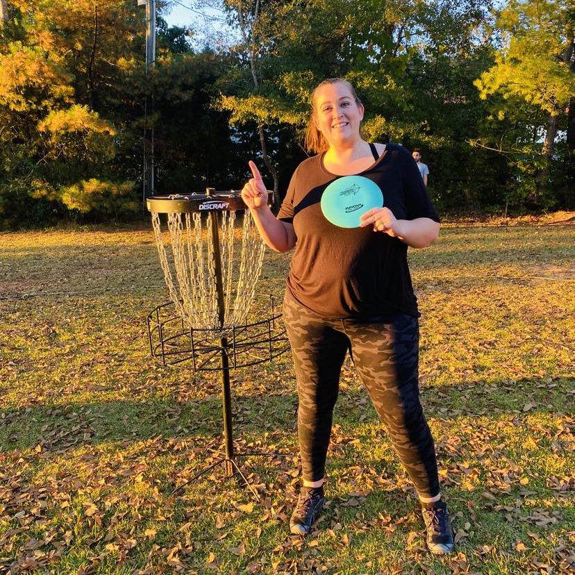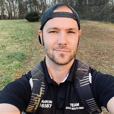 “In Fall of 2017, I discovered the sport on a trip to Asheville and played my first round with an ultimate disc. I couldn’t par any of the holes so I knew something wasn’t right. Eventually, I realized there were special discs for this sport. I bought my first starter pack in 2018 and quickly got hooked!”